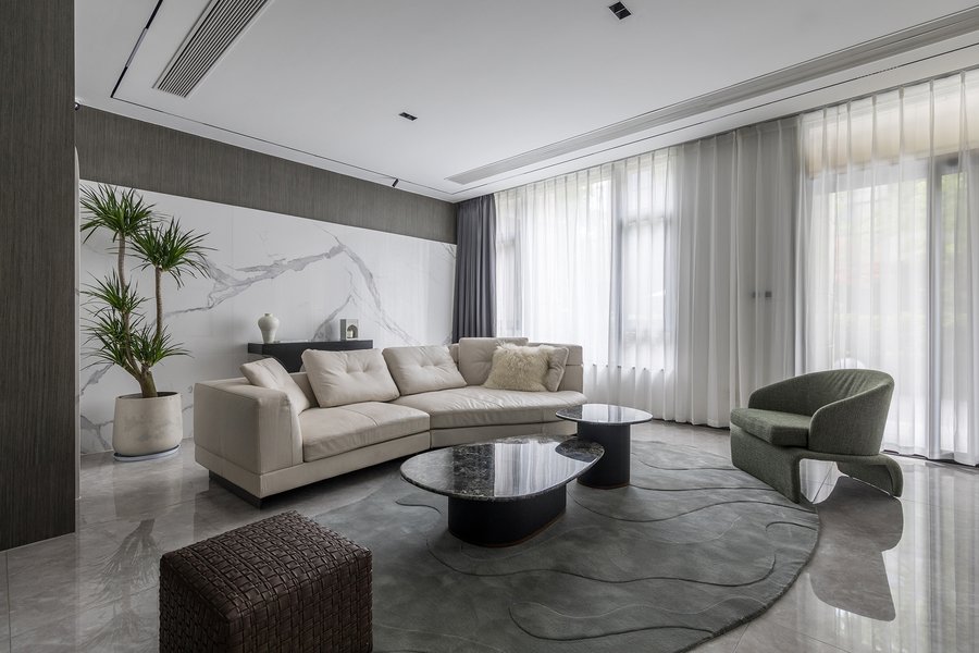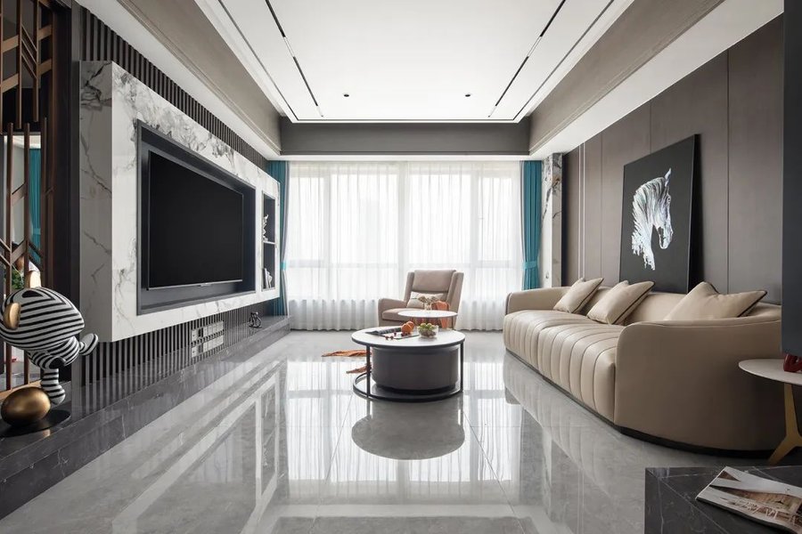 浅色系具有后退性,视觉上能让空间看上去更轻盈。天花板可以选择纯白色,再对吊顶进行抛光处理,让天花板反射更多光线。家具和地面也可以选择浅色,不会显得杂乱,营造一个轻松舒适的居住空间。