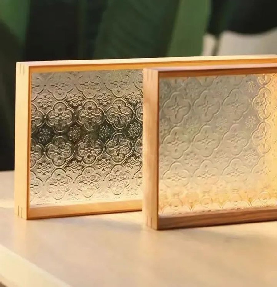 借助水珠漆的表现方法,水纹玻璃的透光性尚可,但相较于普通玻璃来说多了一层朦胧感,像是玻璃上荡漾一层水波,平添一种柔和波澜的美感。