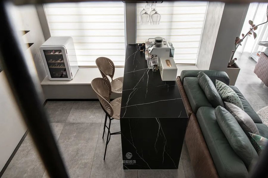 百叶帘的装饰效果也不错,视觉上产生分隔空间的效果,形成一种自然又割裂的美感。