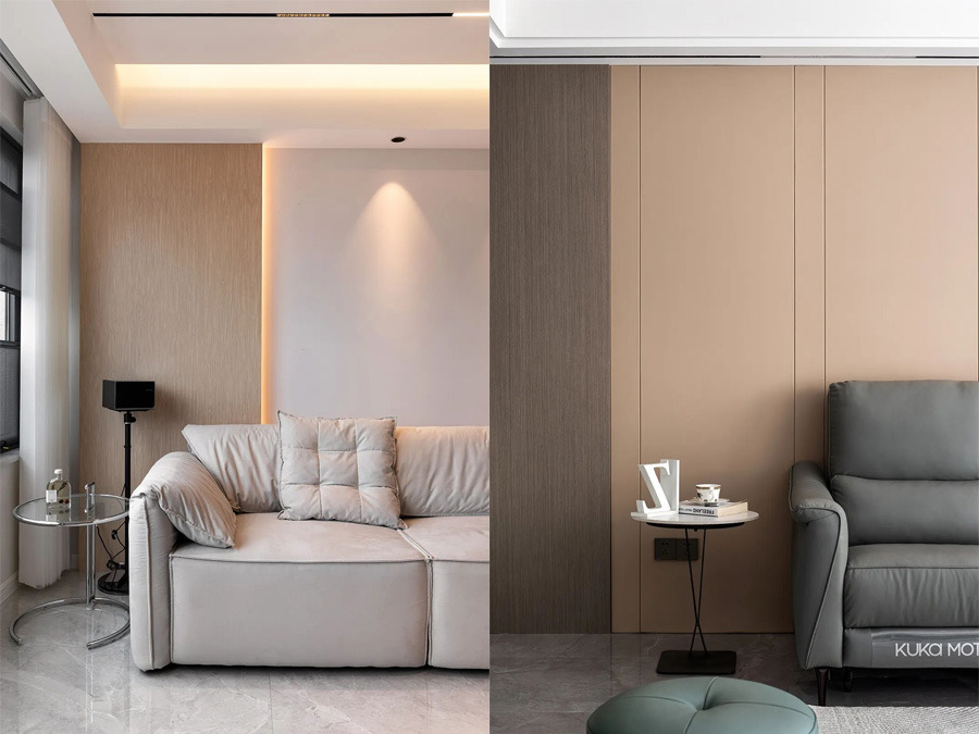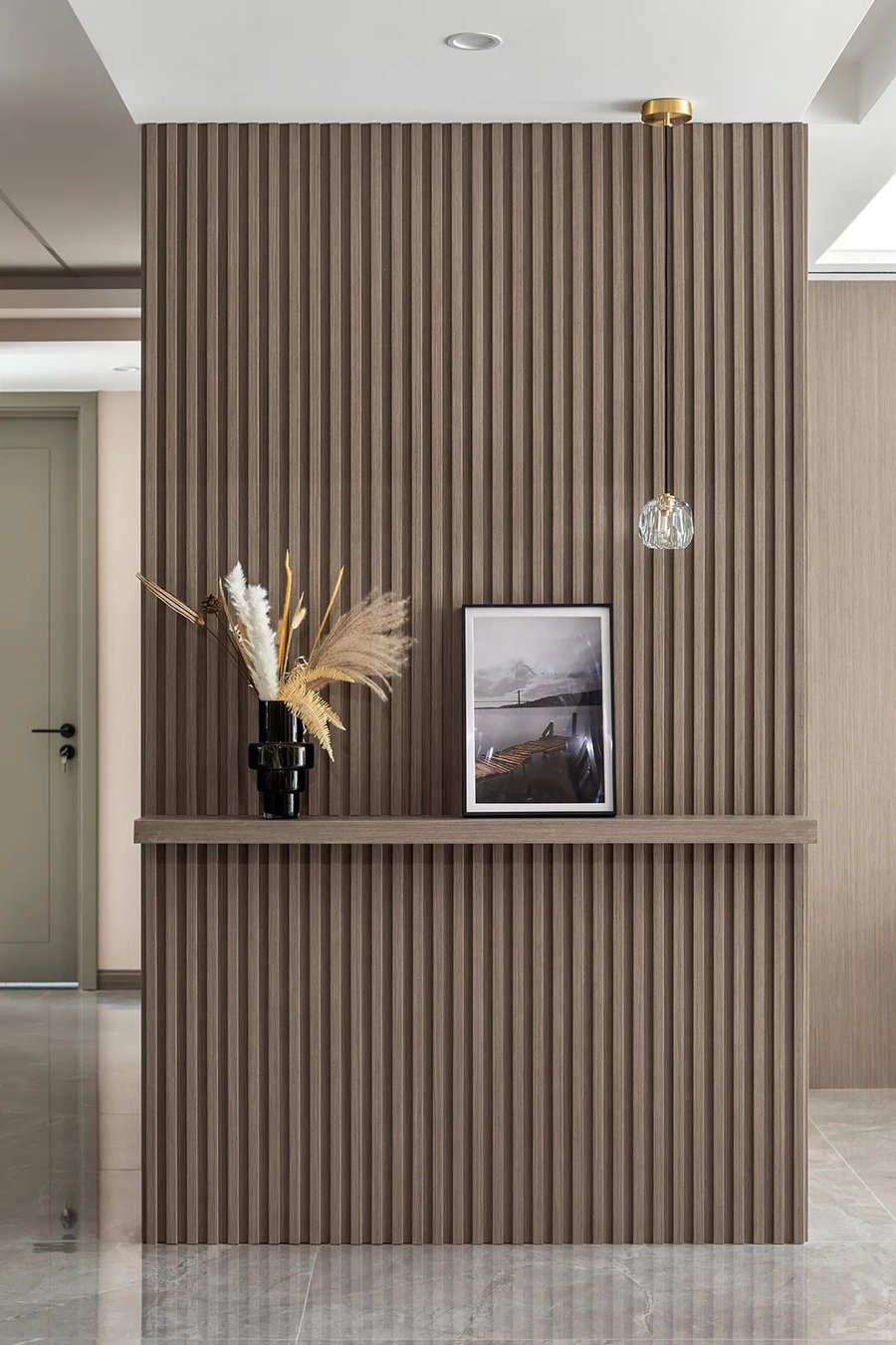 护墙板、木格栅,木质的造型总给人一种温润、质朴的自然感,营造温暖的氛围。