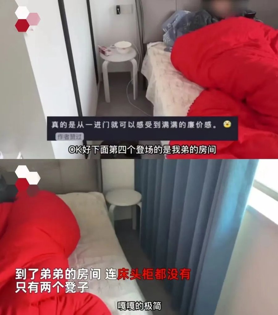 其次是家具问题,床头柜直接用凳子代替,凳子:你礼貌吗?