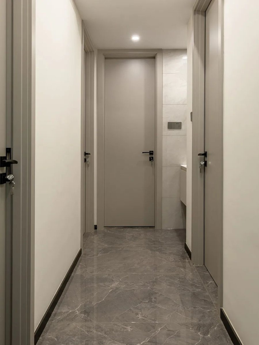 如果你问店家要了门套、墙地面同色的踢脚线小样对比之后,依然觉得这个颜色怎么都不满意的话,那么不妨试一下百搭黑色踢脚线。