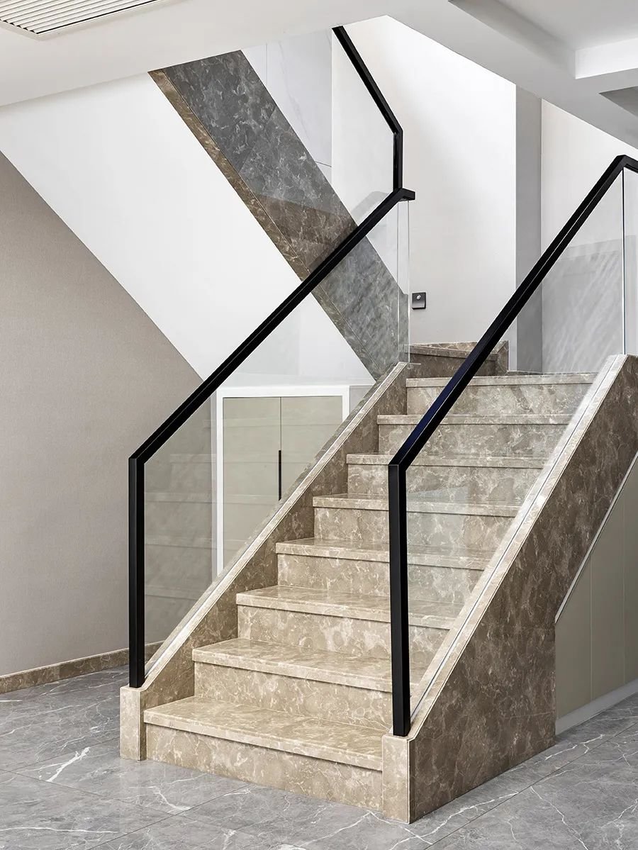 像这种多层的家庭,踢脚线与楼梯地砖保持同色同花纹做出来的效果也非常不错。