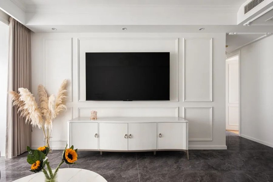 踢脚线的颜色还可以与墙面或地面保持一致,比如大白墙就选择白色踢脚线。
