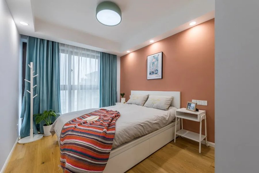 所以在设计儿童房时,应该遵循大面积安静的浅色调+小面积图案/拼色,利于孩子休息的同时,还能发散思维增加想象力。