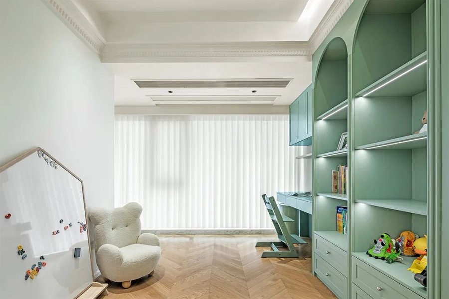 在大家传统的印象中,儿童房是不是就应该是颜色鲜艳的、饱和度高的,符合孩子活泼好动的天性?