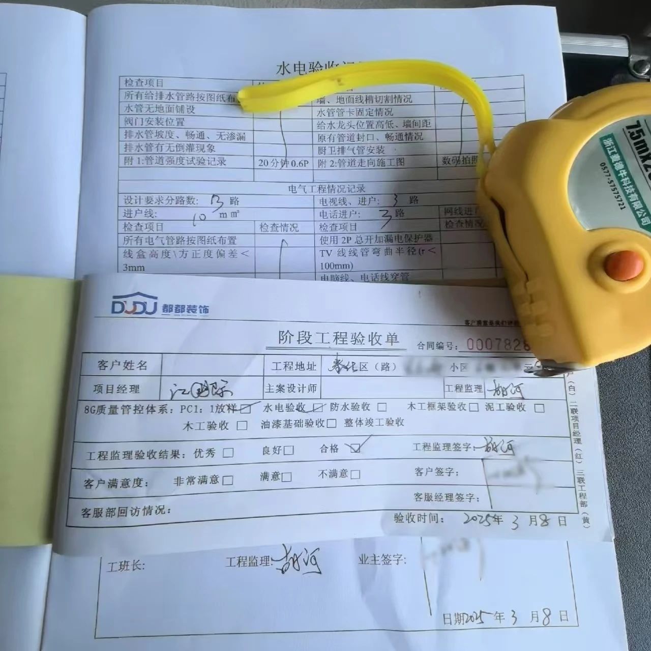 ▲都都装饰工程验收单据