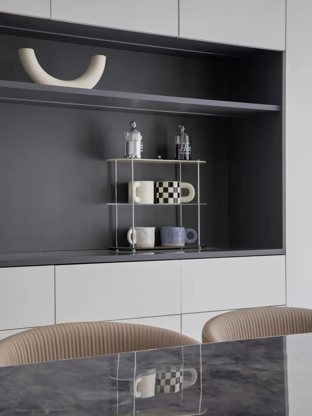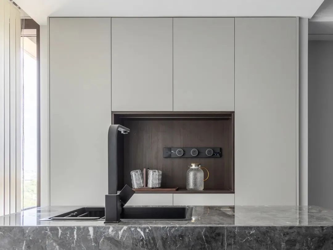 黑色也可以与其他明亮的色彩形成强烈的对比,比如在白色为主的空间中,黑色的柜子作为点缀,能够增加空间的层次感和立体感。