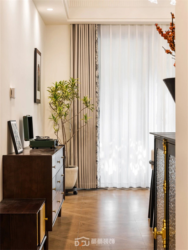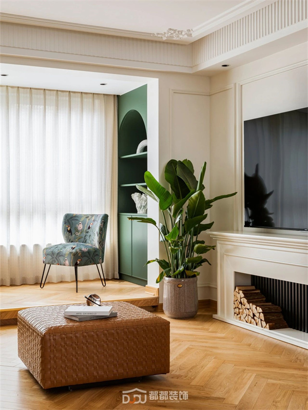 原木的温润浸透绿植的活泼,两者之间仿佛有种天生的吸引力,最终营造出自然又生动的空间秩序,萦绕质朴放松的氛围感。