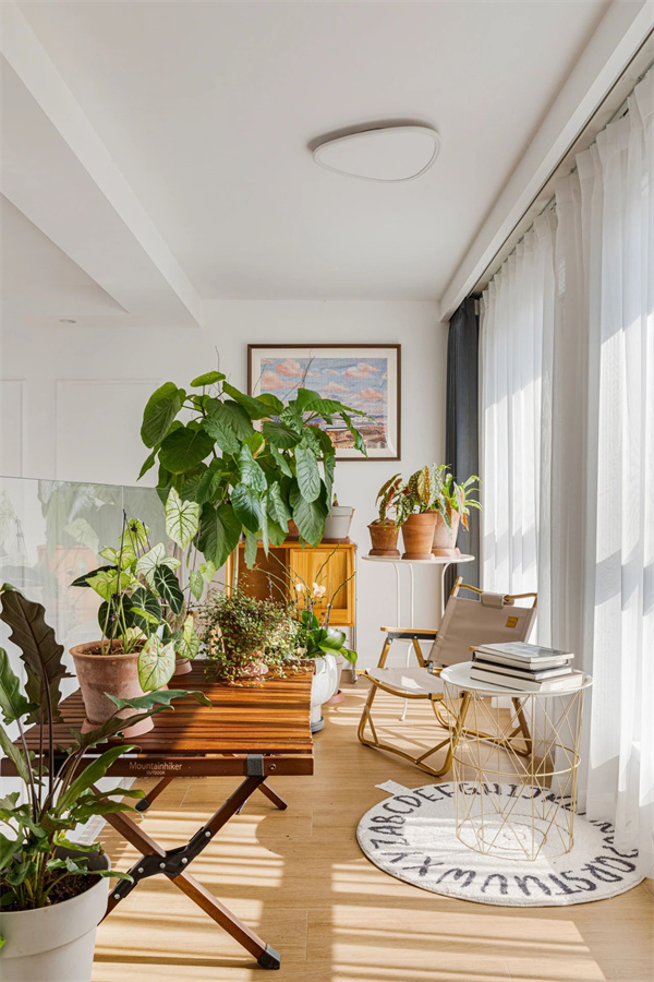 另外像大量使用绿植、针织等软装材料,能够将日常的小杂乱掩盖在粗糙有序的肌理感当中,提高容乱率。