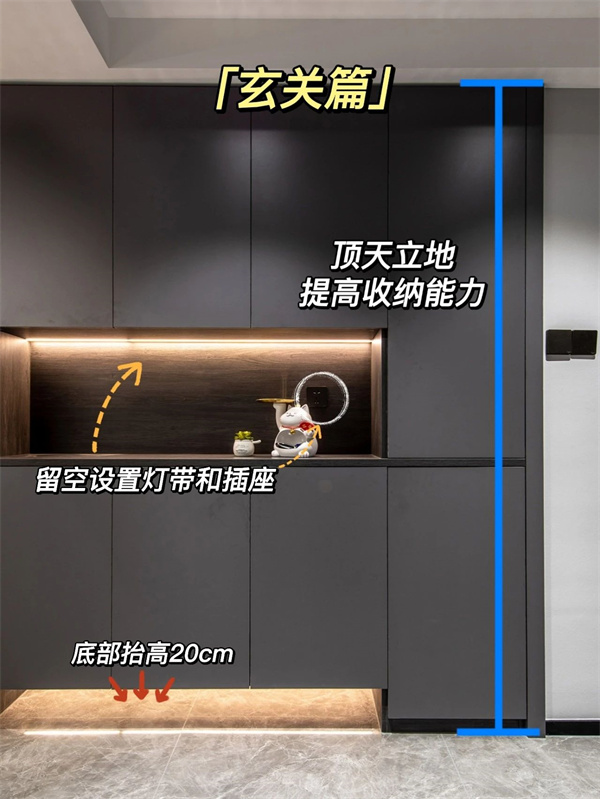 鞋柜顶天立地设计能最大程度提高收纳能力。