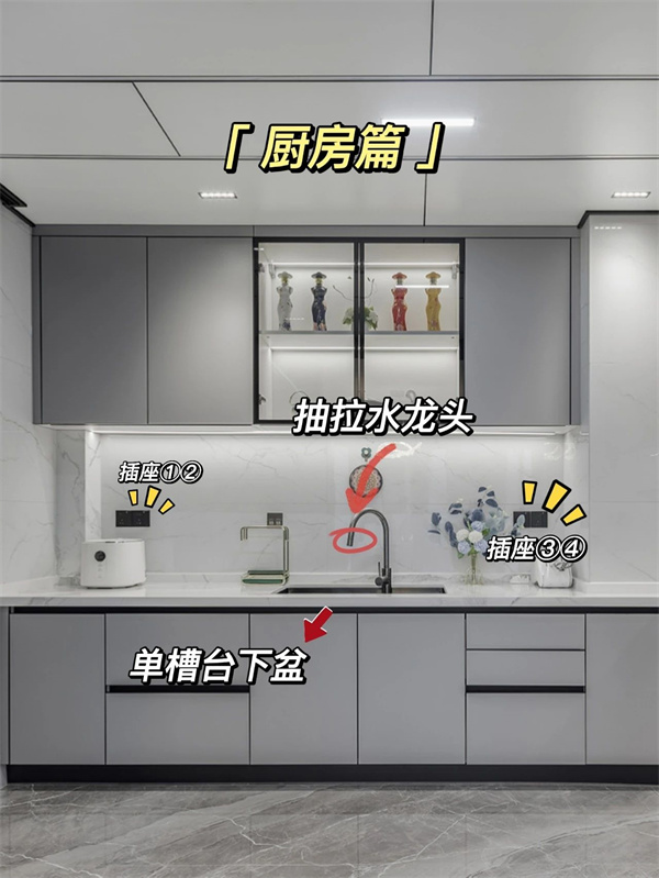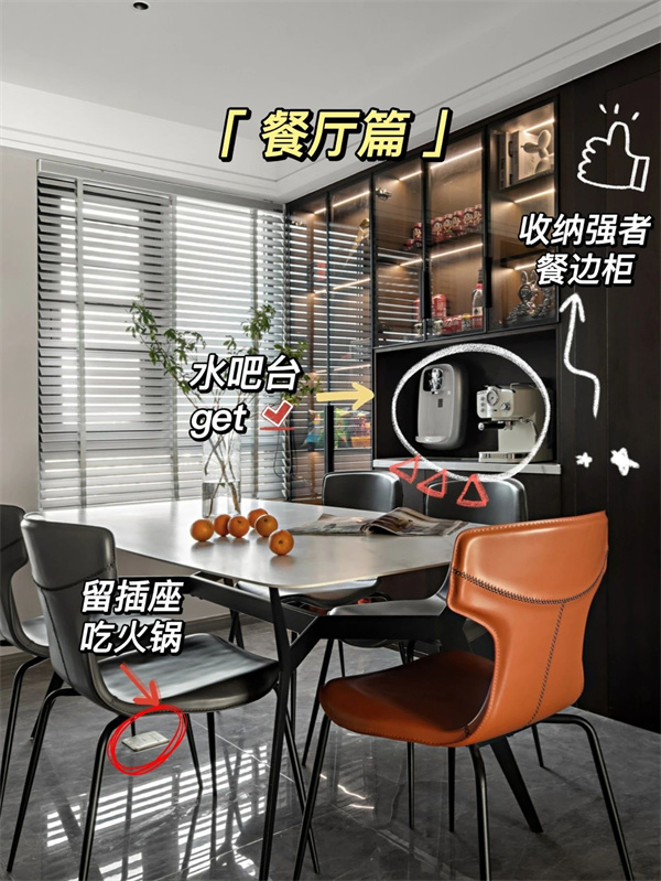 在餐边柜边上留插座,便于热水壶、咖啡机使用,一个水吧台就诞生啦。