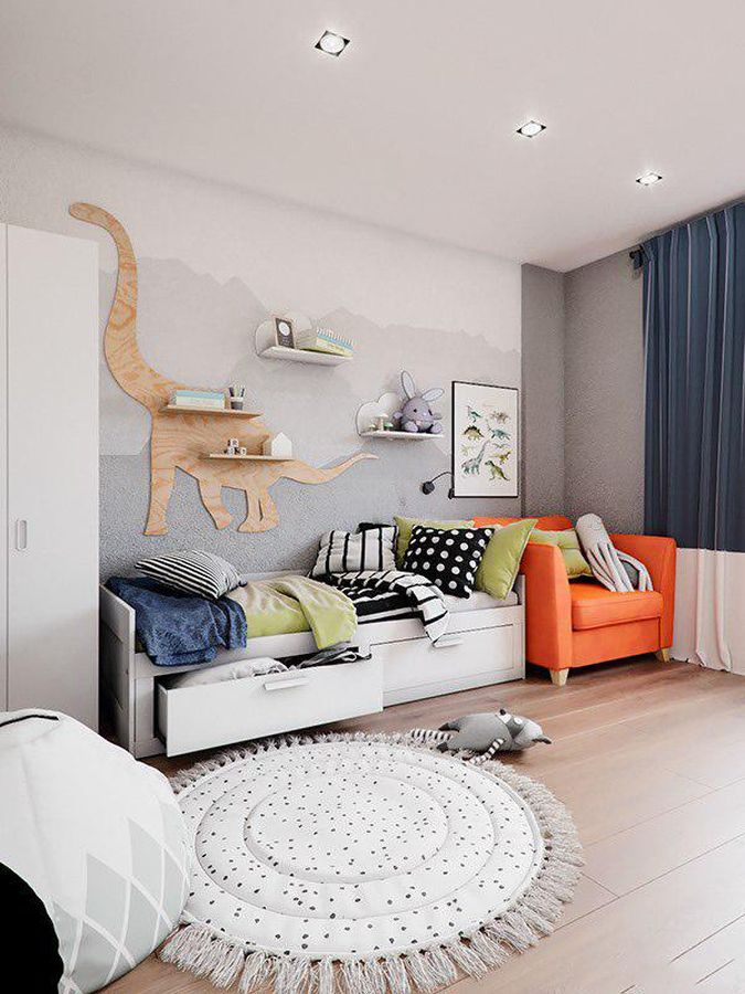 不同颜色的分色墙壁,增加了室内的更多的可能性。