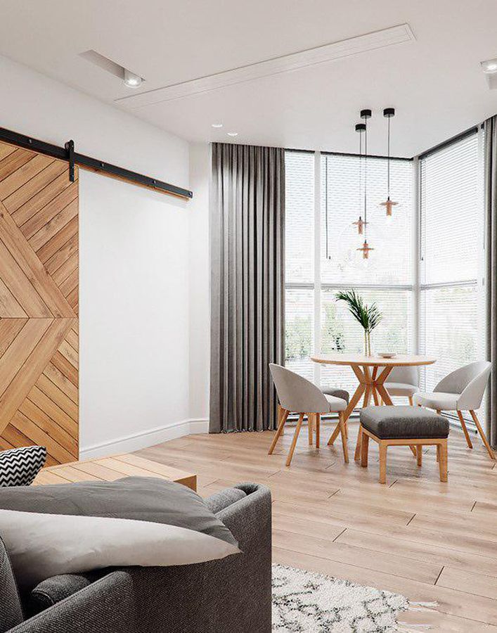 在看一些优秀的空间色彩统一的设计作品的时候,同样也都是倾向于这个配色规律的,30%的颜色引起了视觉上的注意,剩余的10%会增加一些火花,比如加上一些撞色的搭配。