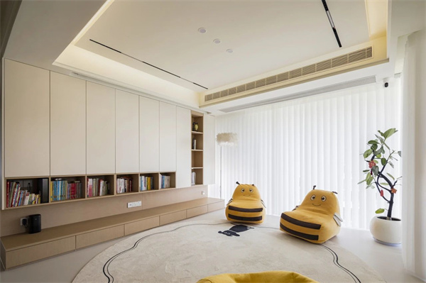 书房摆脱了冷冽的严肃感,转而增加了属于家的舒适和温馨。