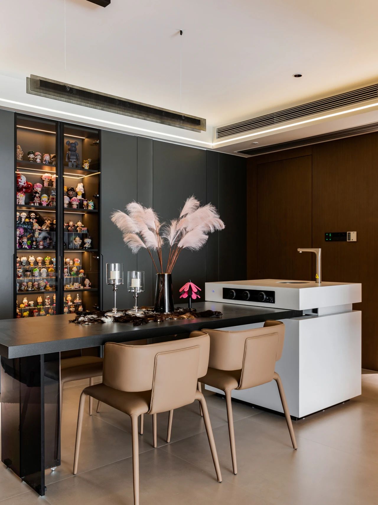 同样还可以在书房买个成品柜,或者做定制柜的同时专门做出一个用于展示潮玩手办的区域,还可以根据物品的尺寸去规划专属的展示位。
