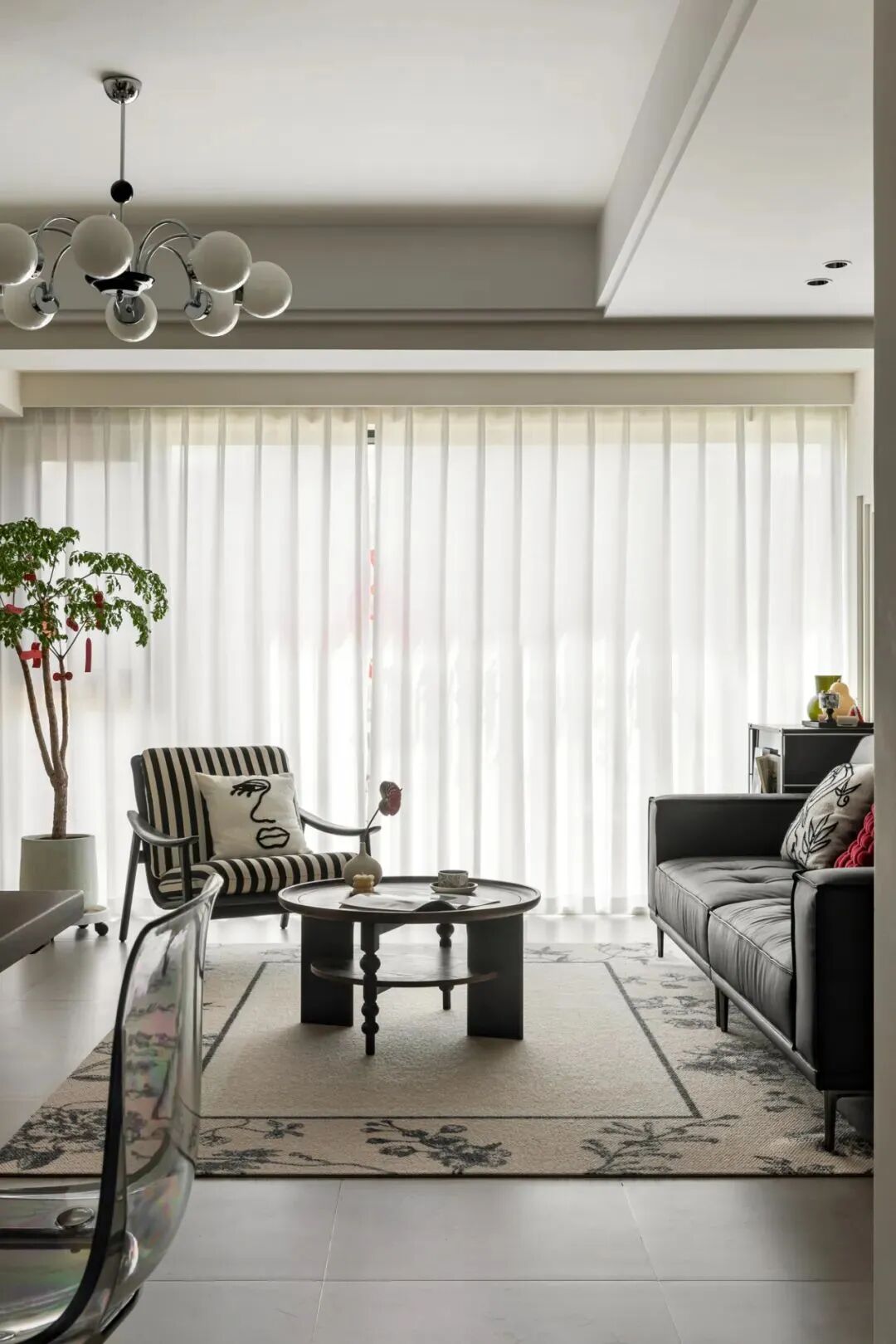客厅是家庭活动的中心和接待客人的场所,窗帘的选择要注重美观与实用性的结合。