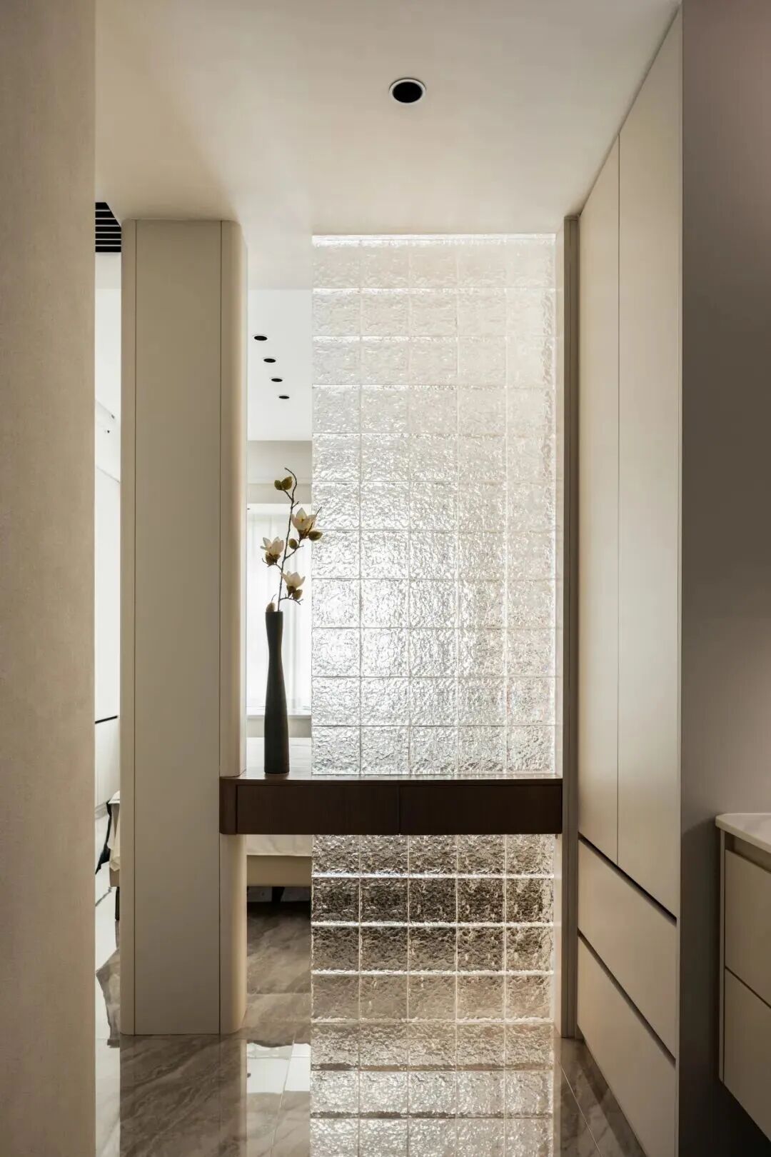 将80%的杂物收纳进柜子,让空间显得整洁; 将20%的装饰品/最常用的物品放入开放式/玻璃柜门的柜体,作为展示。 做好收纳设计,将大部分杂物用柜门挡起来,保持台面“空无一物”,能让空间更显整洁通透。