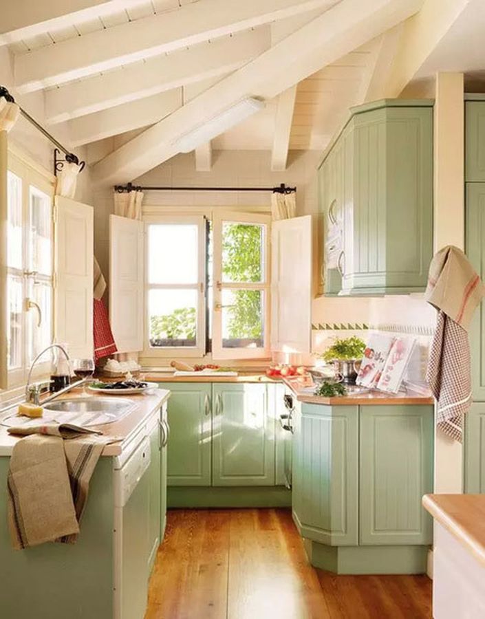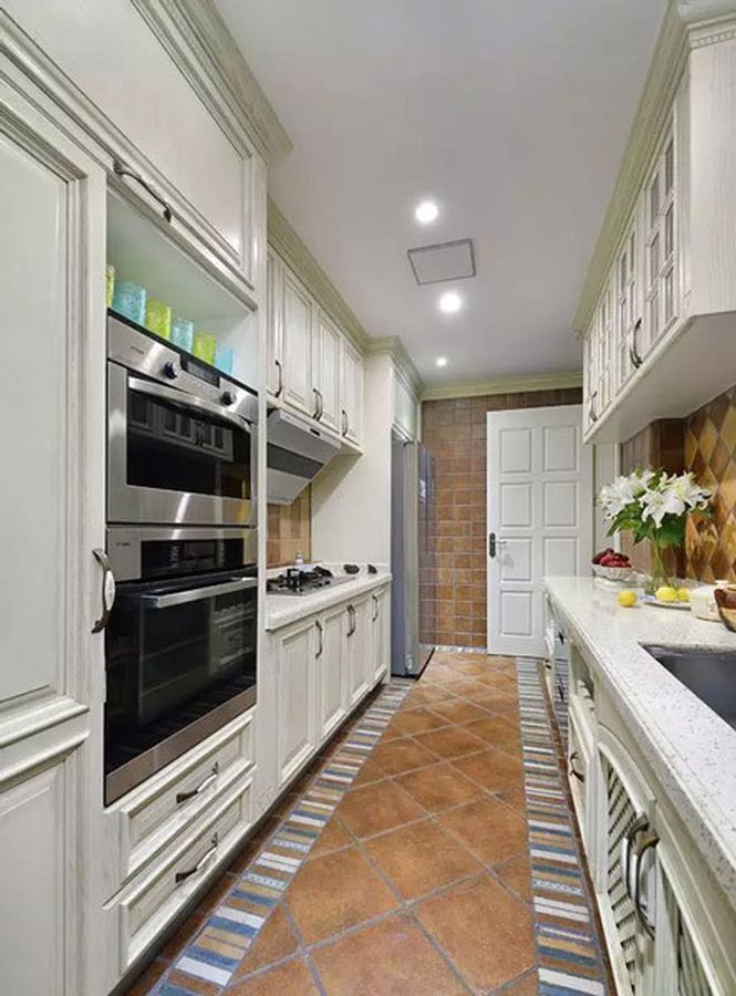 厨房的顶面、墙面宜选用防火、抗热、易于清洗的材料,如釉面瓷砖墙面、铝板吊顶等。 厨房的天花吊顶应考虑采用防水产品,即防水石膏板,耐水腻子及高性能的防水乳胶漆,这样在美观的同时,不至于造成使用上的不便。吊顶选用方便清洗的材质,厨房是油烟重地所以清洁工作也是重中之重哦。