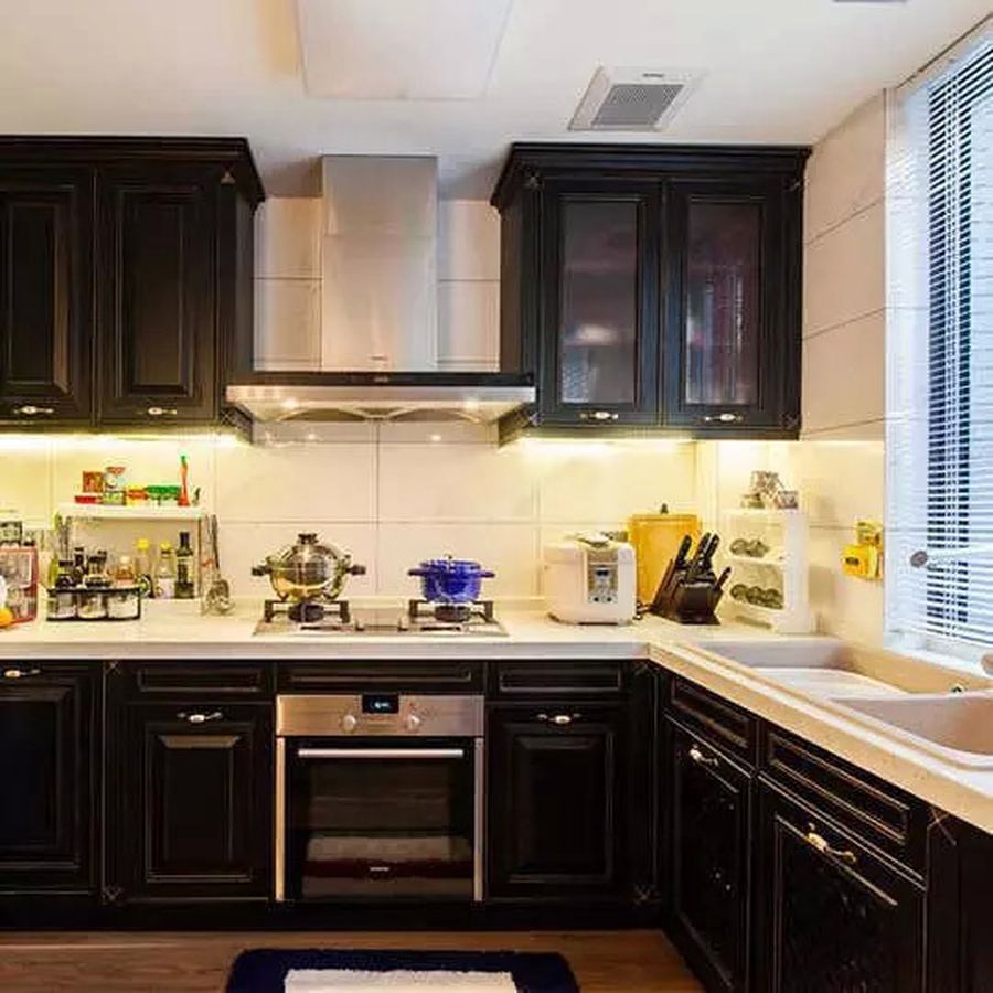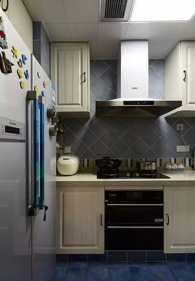 在贴完墙砖、地砖后,就可以约相关人员上门安装吊顶、橱柜和灯具。(橱柜设计好烟机的安装位置、吊顶时需要开好烟管的孔)橱柜和油烟机的安装。