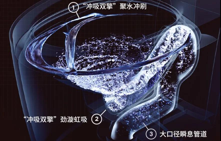 强大的排污功能,双水路劲漩冲洗,全面冲净死角内壁:
